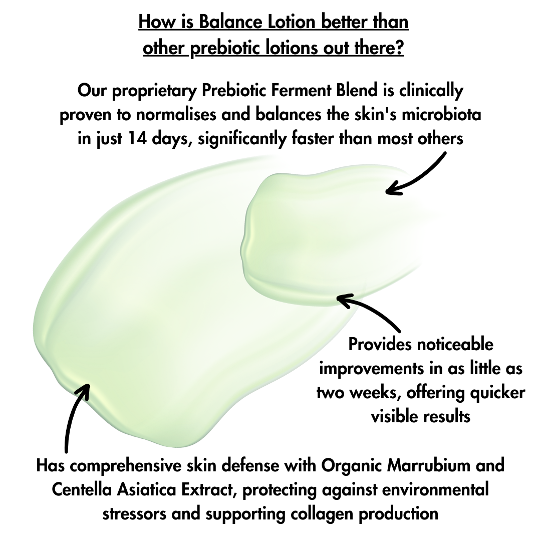 Proprietary prebiotic ferment blend helps balance your skin’s microbiome in 14 days, creating a healthier environment for your skin.