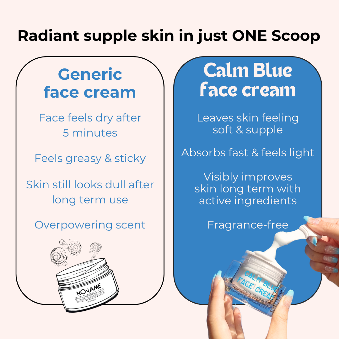 Discover a refreshing burst of hydration with Calm Blue Face Cream. This lightweight, fast-absorbing formula is crafted to support your skin’s natural barrier while leaving it looking smooth, dewy, and balanced.