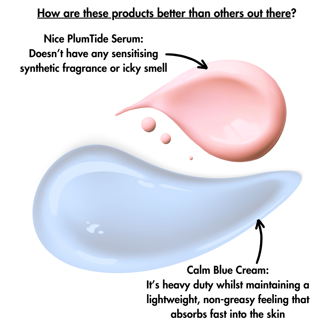Nice PlumTide Serum: Use 1-2 pumps morning or night. With circular motions, apply around your face and neck, avoiding the eye area. You can apply your other products straight away.