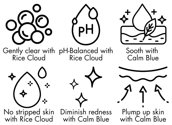 Rice Cloud Cleanser: Apply 1-2 pumps on your palm and lather with water before cleansing the face and neck. Wash off with lukewarm water and pat mostly dry. You can apply your other products straight away whilst your skin is still lightly damp.